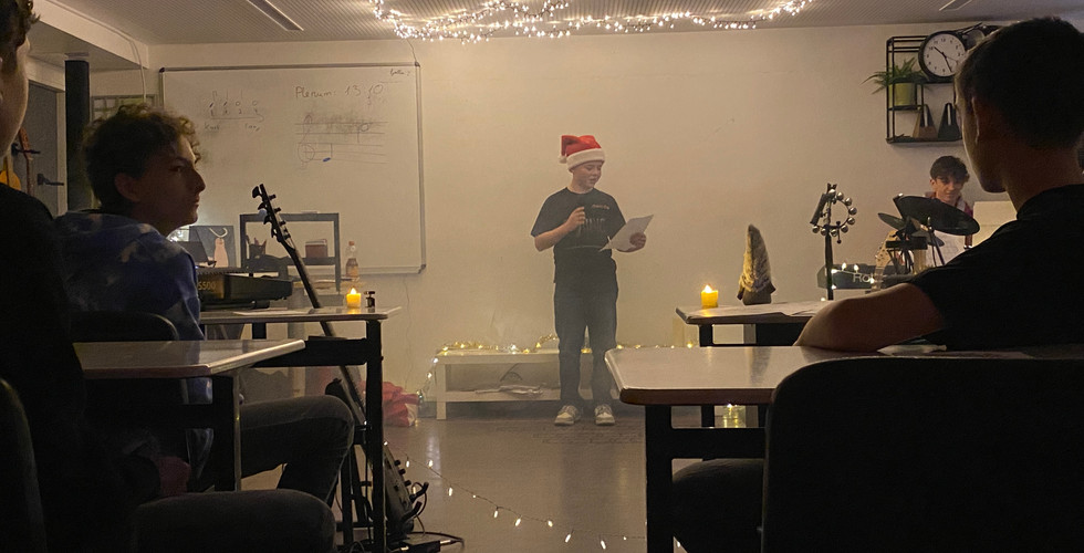 Die Schülerband gab mit der Unterstützung von Herrn Kowanda am 9.12.2025 ihr nächstes Klassenzimmerkonzert für die 8a. Die Bandmitglieder aus derselben Klasse stimmten alle mit "In der Weihnachtsbäckerei", "Last Christmas" sowie vielen weiteren Weihnachtssongs in Weihnachtsstimmung. Kleine Geschenke für die Zuschauer versüßten den Auftritt. Danke für euren Einsatz und das Konzert!